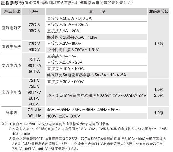 99T1型、96型、72固定式直接作用模擬指示電測量儀表