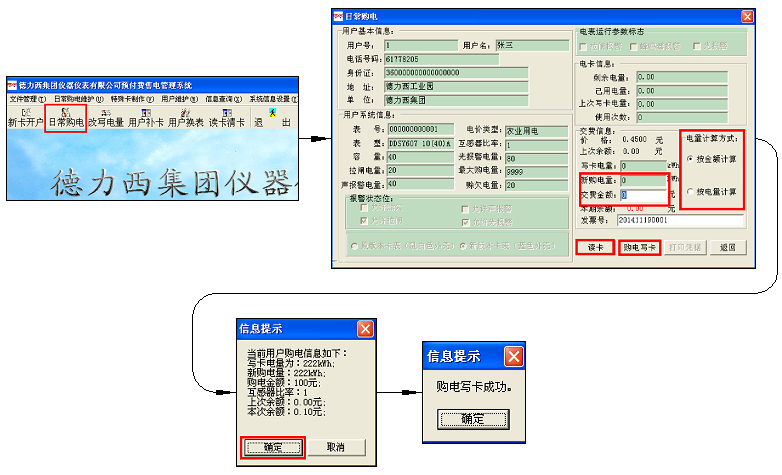 把用戶卡插入讀卡器,打開日常購電,先點(diǎn)擊讀卡,選擇計(jì)算方式,輸入購電量或金額;完成后點(diǎn)擊購電寫卡。