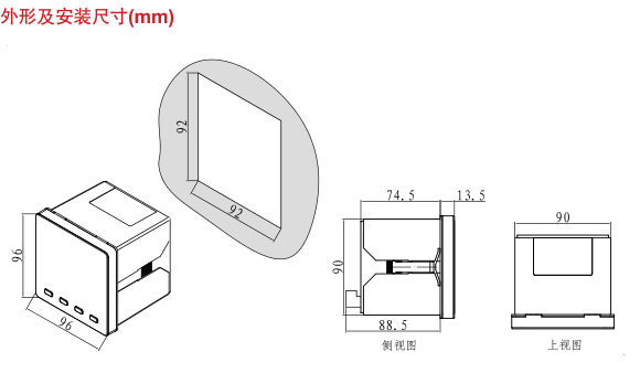 例 1 、如客戶需要三相有功功率表,產(chǎn)品名稱為功率表,輸入方式為交流,外形尺寸為 96 × 96, 品