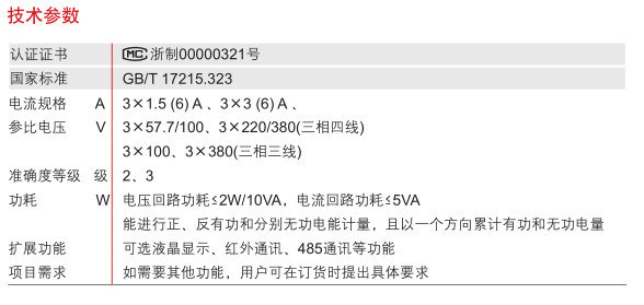 如客戶需要三相四線電子式無功電能表,電壓為220V,準(zhǔn)確度等級為2,電流為1.5(6)A,