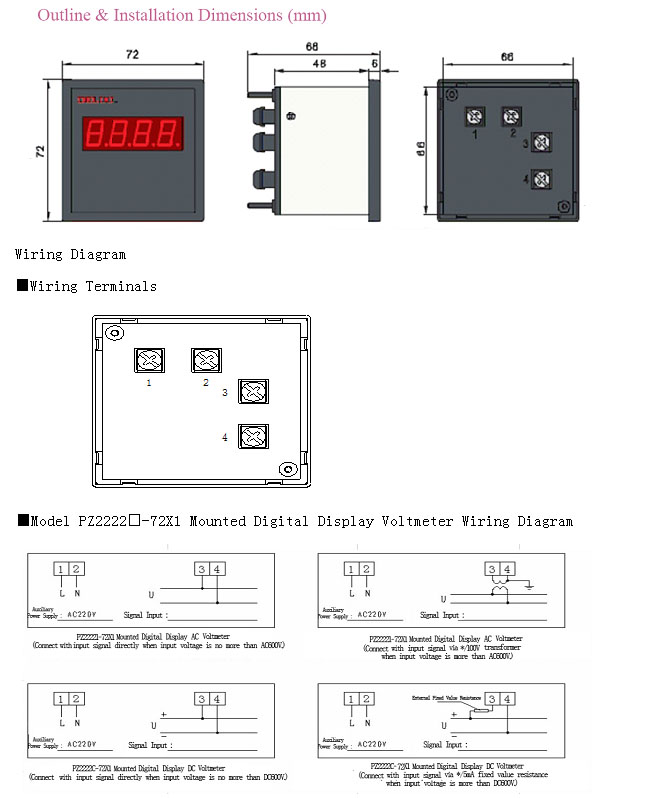 | AC Voltmeter | PZ2222L-72X1 | Connect Directly with 3V~600V |