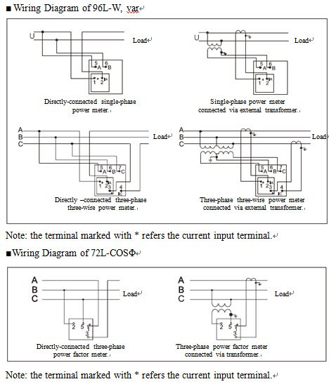 2: For AC ammeters, the current range of directly-connected Type 99 is 0.5A~20A and 1A~5A and 10A~100A for Type 72 and Type 96 respectively.