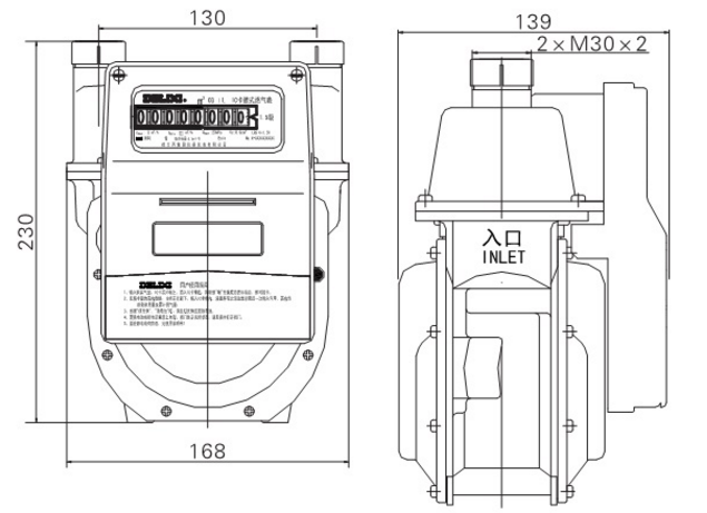 This product contains the following detailsCG1.6LYC, CG2.5LYC(Aluminium Case)Wireless remote transmission gas meters are type of new smart gas meter which is composed of flow signal acquisition module, wireless RF transmission module, IC card module, valve control module and power management module, with the diaphragm gas meter as a basic. The gas meter measures the flow rate of combustion gases like natural gas, liquefied petroleum gas (LPG), coal gas with the function of data conversion, wireless data transmission and valve control. The technical performance complies with GB/T 6968-2011 and JJG 577-2012.